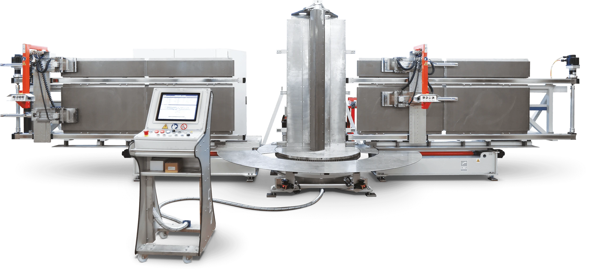 The CB coilbender machine is designed and built by C.M.S. to fold finned packages with single or multiple folds in manual, semi-automatic or automatic cycle. The number and shape of bends is used to complete the name of the coilbender, which may perform single bends. manual position (CB-L), vertical bends with automatic position (CB-V), multiple bends with angle automatic position (CB-M) or continuous bends round shape (CB-O). Coils up to 3000 mm can be folded and, depending on the radius of curvature, up to 3 coils from an overlapping rank. It is possible to fold multiple finned packages placed side by side.